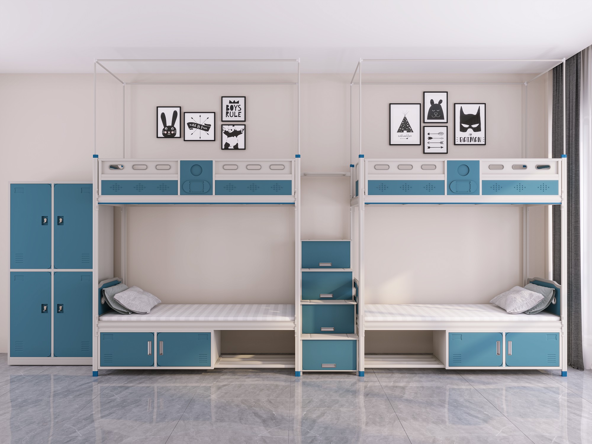 Name: School Bunk Bed with desk and cabinet